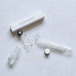 Contents: 10g (enough to part fill 3 x 10ml roller bottles) boxed clear quartz gemstone tube