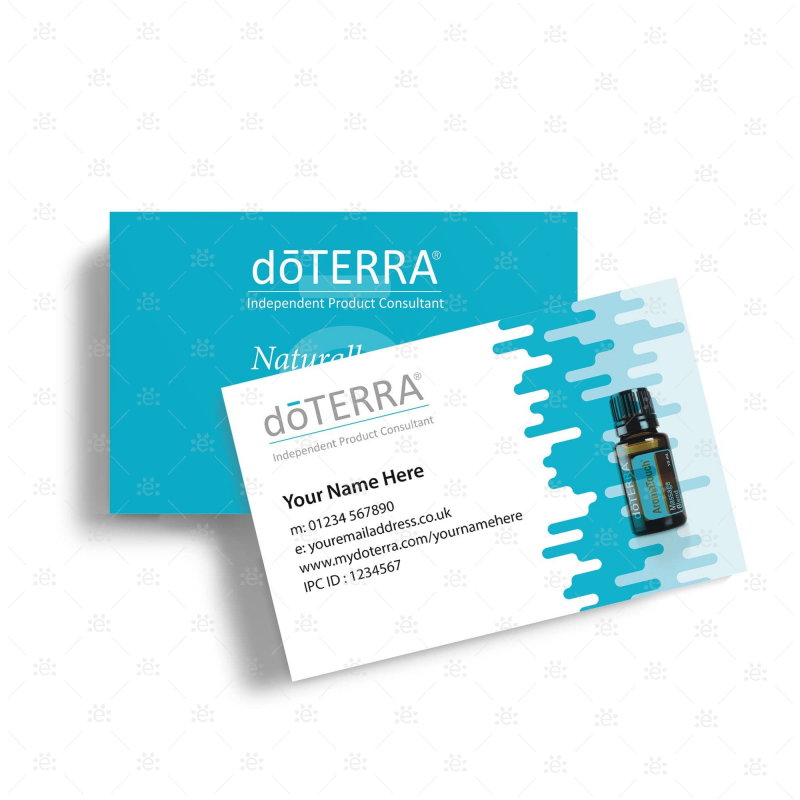 Our dōTERRA® approved business cards are produced using 350 gsm coated card stock with a matte front, silk-coated back and a durable feel. Matte varnish has a rich texture for a classic and elegant look. They are available in a 2 sided option, or a 4 sided option which includes a tear off card to collect your customer's details. The 4 sided folding cards are perforated in the middle for easy separation.