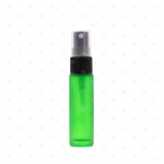 Contents: 5 x 10ml Green Deluxe Frosted Spray Bottles with black fine misting spray tops and clear plastic caps.