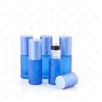 Deluxe Frosted 5ml Blue Roller Bottles with Blue Metallic Caps & Premium Rollers (5 pack)