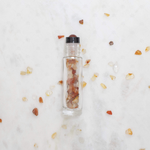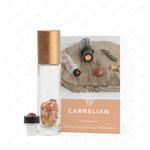 Along with the Carnelian gemstone rollerball, this set also comes with a 10ml clear roller bottle adorned with a premium aluminium co-ordinated cap, which is approximately 1/3 full of Carnelian gemstone chips. This set is accompanied by an individual instructional card detailing the wellness and emotional areas that this gemstone can support, with suggested essential oils to compliment its use.