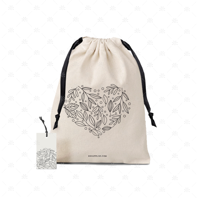 These cream cotton bag are tied with black grosgrain ribbon to compliment the naturally inspired design, and are accompanied with a matching gift tag on which you can write a peronalised message.
