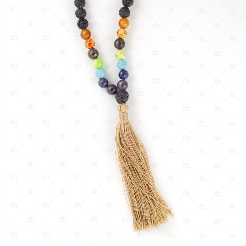 This Natural lava mala necklace has the benefits of chakra stones with a decorative tassel.