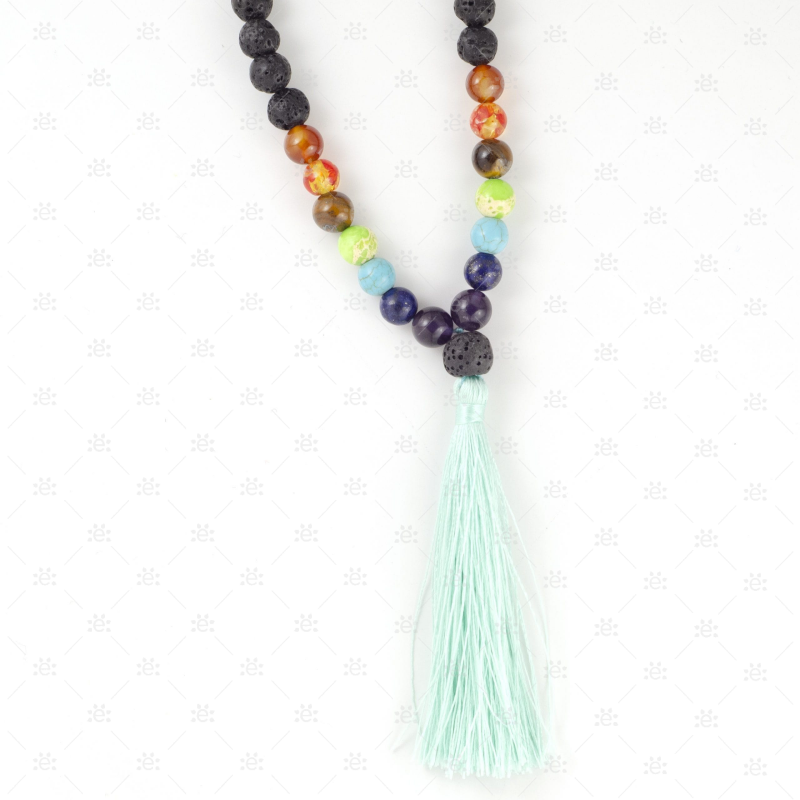 This Turquoise  lava mala necklace has the benefits of chakra stones with a decorative tassel.