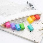 Contents: 5 x 10ml clear bottles with Lipstick Kiss (red) cap and new style stainless steel rollerballs